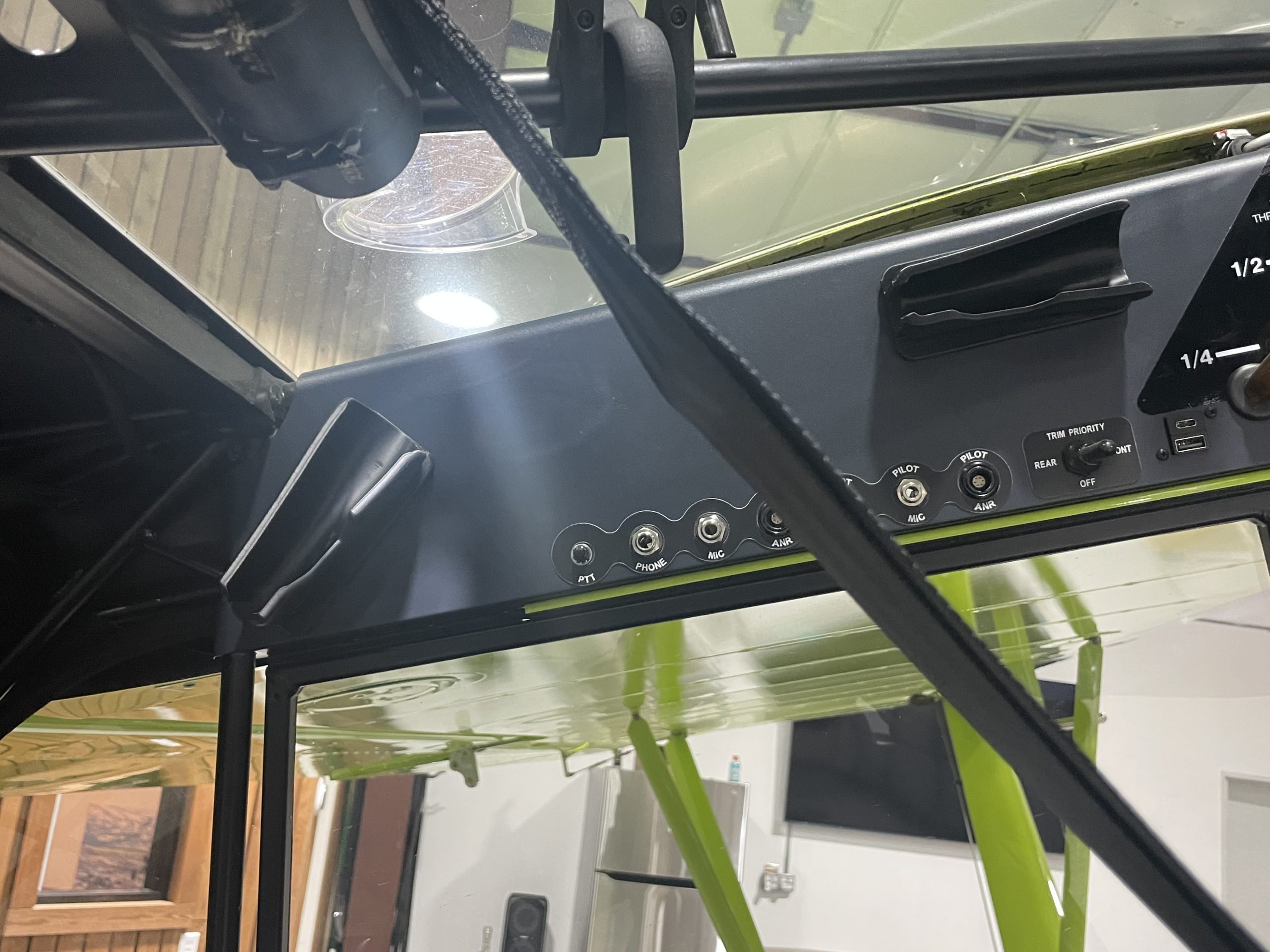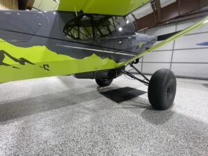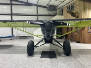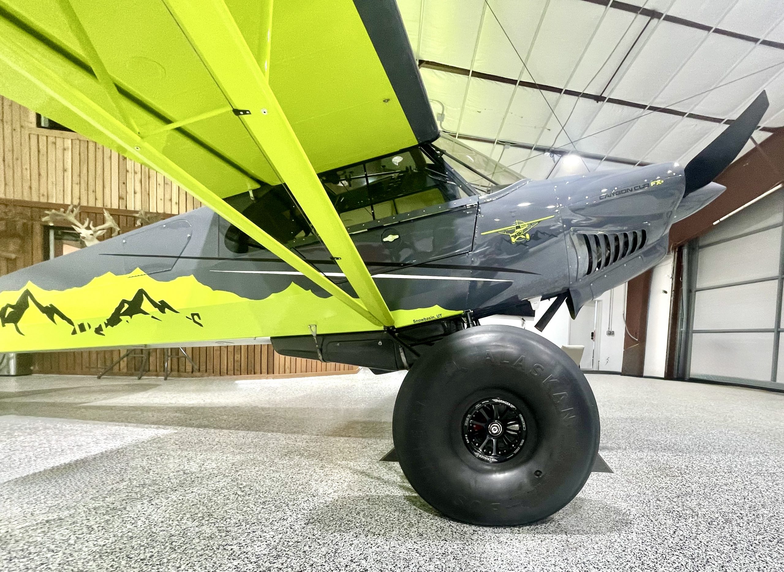 Equipped with 35” Alaskan Bushwheel tundra tires, new TKI 8×2 landing gear, DBX-2 Pro Monster shocks, and an Acme Stinger tail suspension, it’s built to handle demanding backcountry terrain with confidence. Inside, the cockpit features custom deluxe leather seating, upgraded ventilation, a Rosen sun visor, and USB charging ports throughout the cabin and wings. With 44 gallons of fuel capacity, a carbon fiber belly pod, and a smoke system, this FX-3 is equally suited for serious backcountry exploration—or turning heads at fly-ins and airshows.